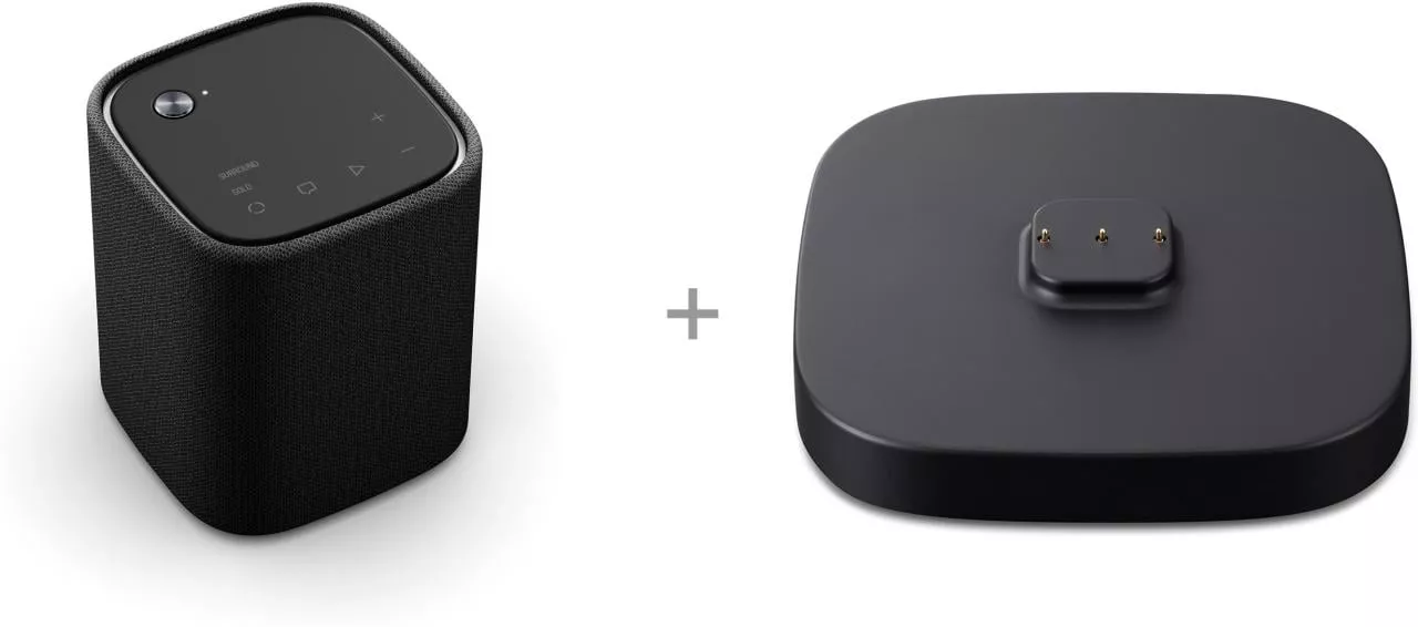 TRUE X органично впишется в вашу жизнь и удовлетворит потребности в звуке гораздо шире, чем обычные саундбарные системы. Конечно, вы можете наслаждаться системой, просматривая фильмы и музыку с потрясающим качеством звука. Кроме того, беспроводные колонки объемного звучания также работают как портативные колонки Bluetooth. Просто нажмите кнопку Solo, и музыка будет сопровождать вас повсюду! Система поставляется с задними динамиками для отдельной зарядной базы.